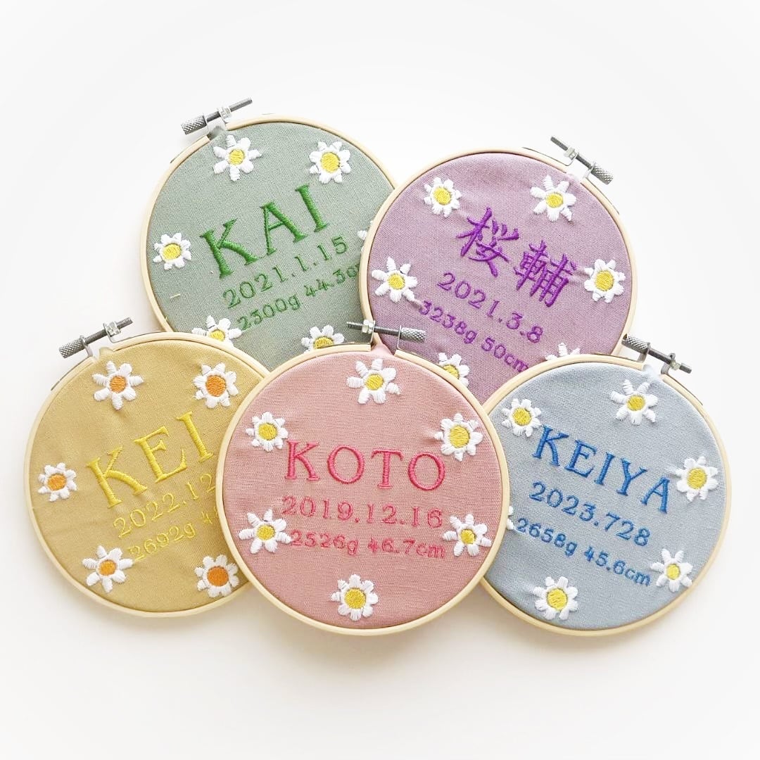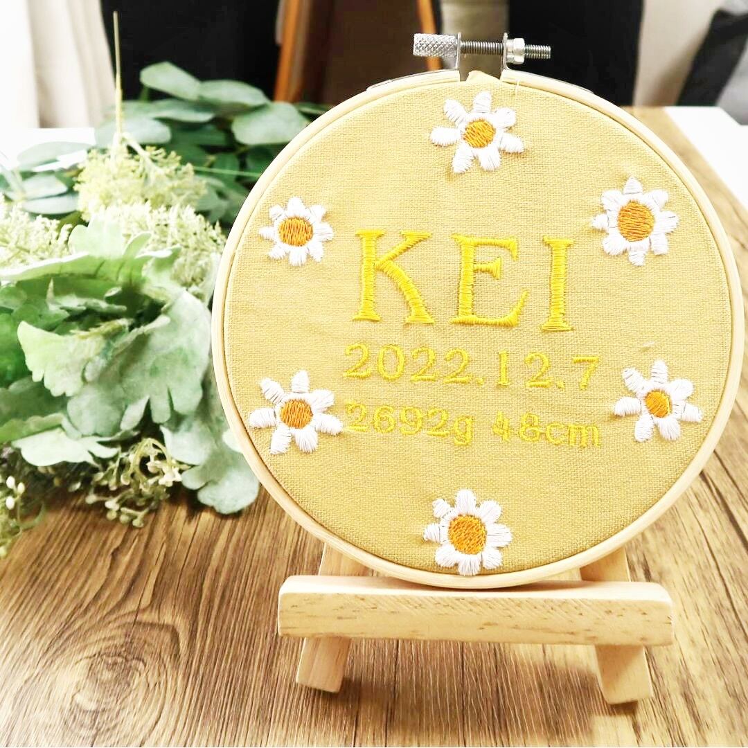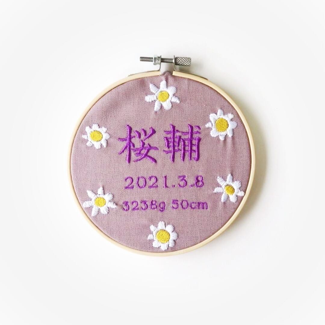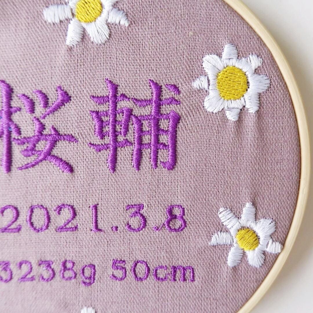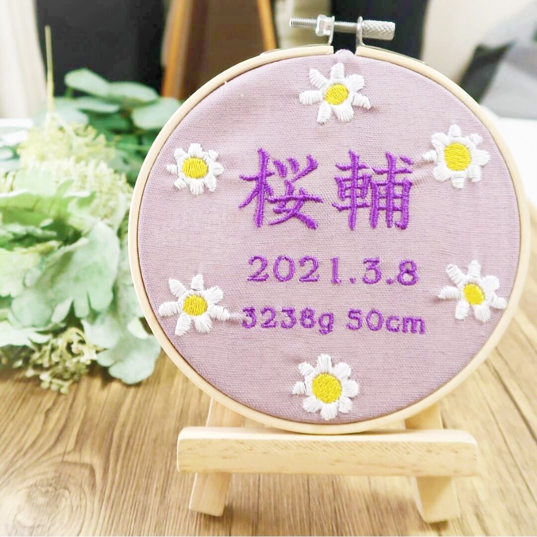 命名書 お花 手刺繍風 記念品 出産祝い 贈り物 出産記念 赤ちゃんの名前 ギフト プレゼント ピンク 青 ブルー 緑 グリーン 黄色 イエロー 紫 パープル 花