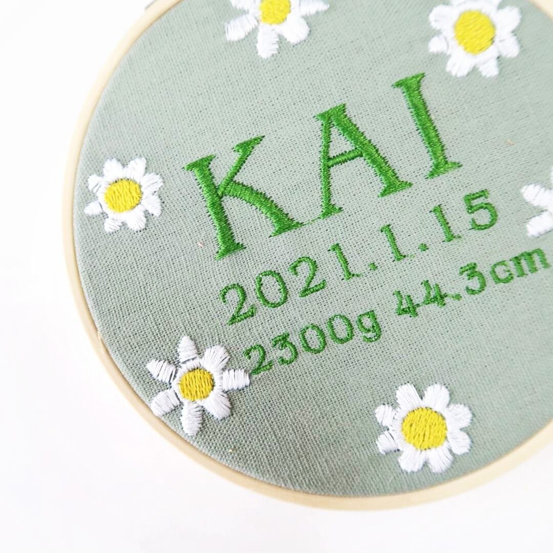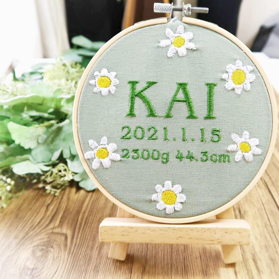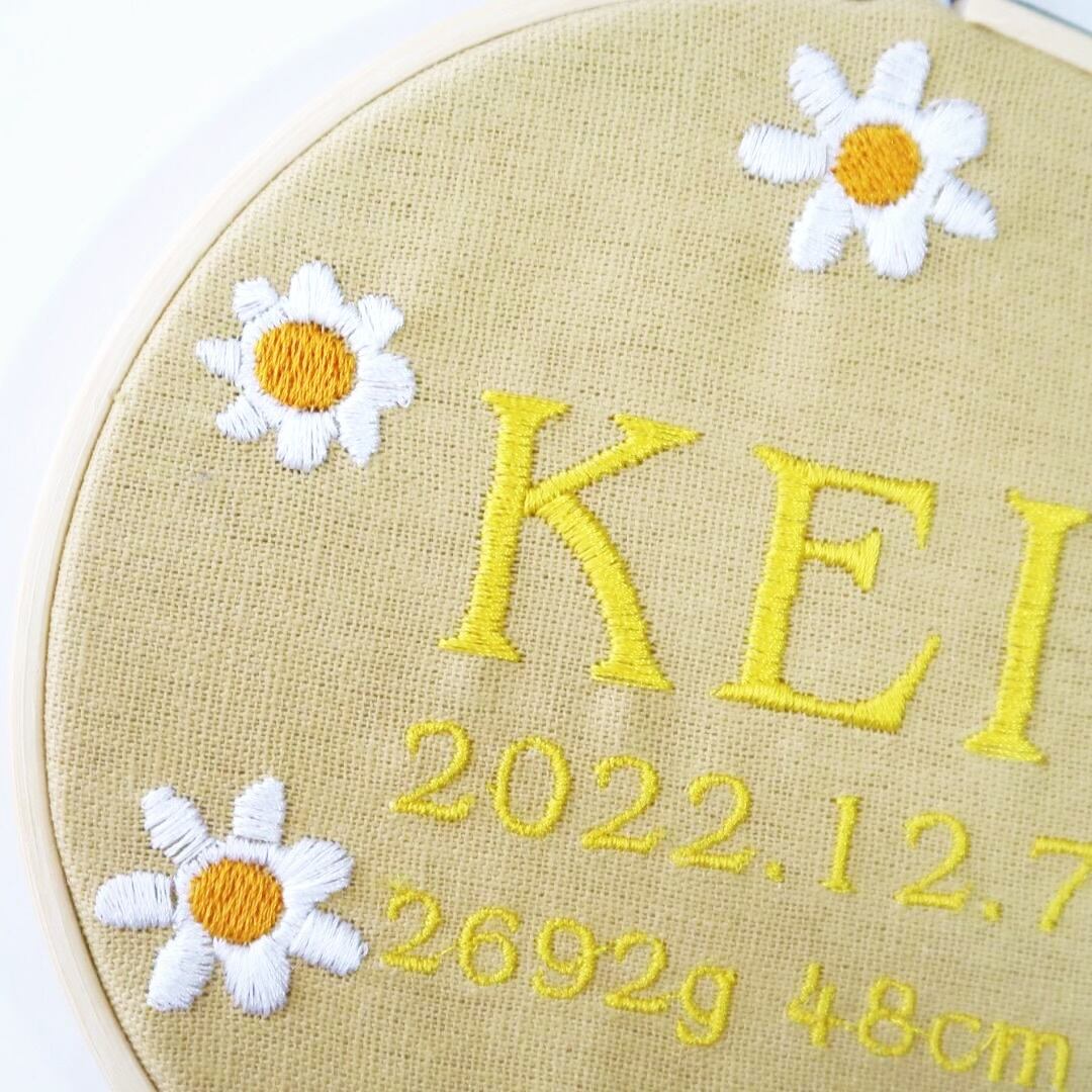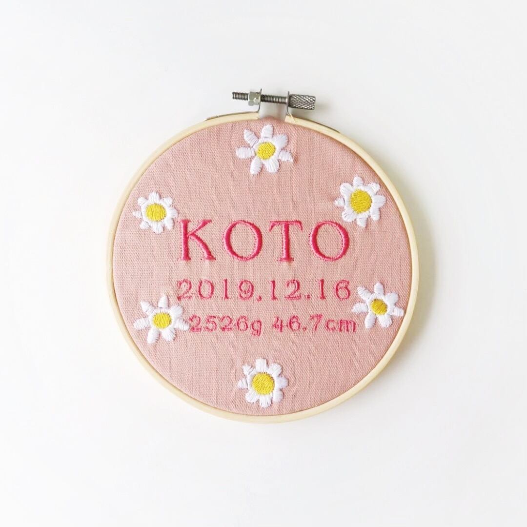 命名書 お花 手刺繍風 記念品 出産祝い 贈り物 出産記念 赤ちゃんの名前 ギフト プレゼント ピンク 青 ブルー 緑 グリーン 黄色 イエロー 紫 パープル 花