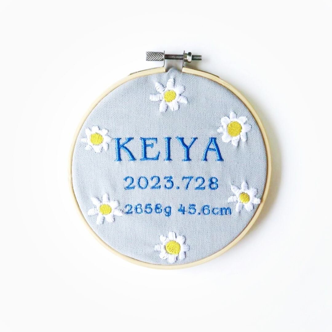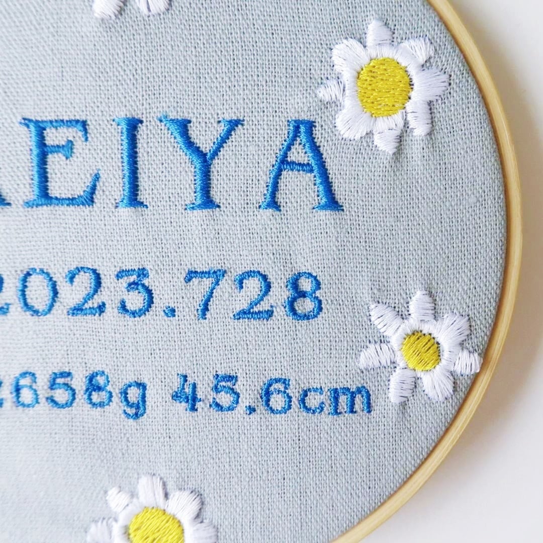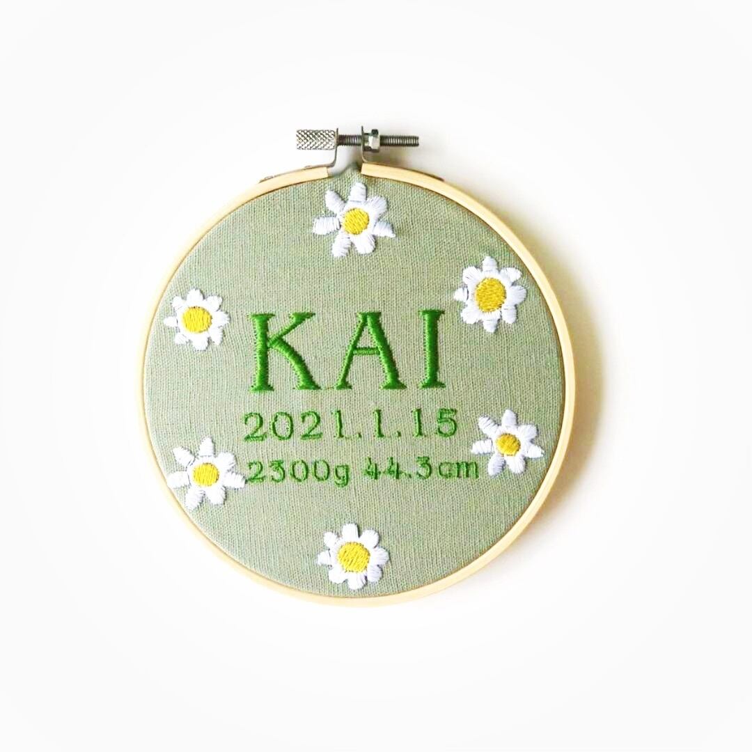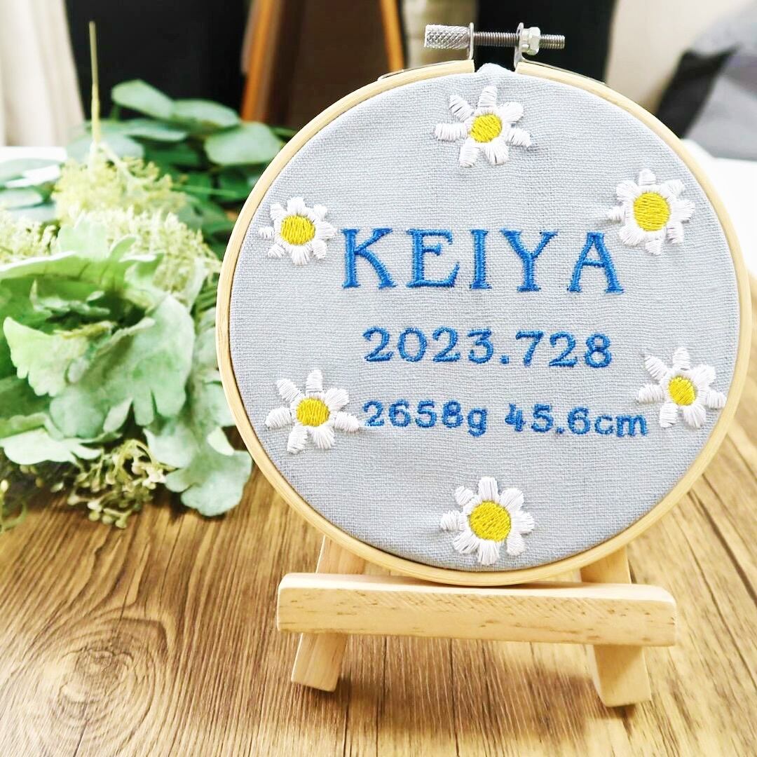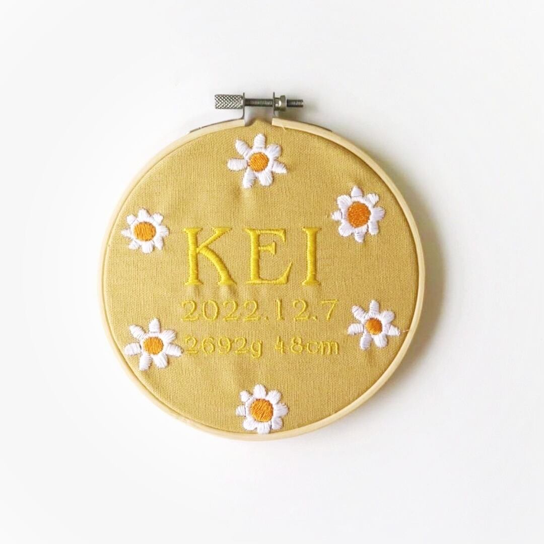 命名書 お花 手刺繍風 記念品 出産祝い 贈り物 出産記念 赤ちゃんの名前 ギフト プレゼント ピンク 青 ブルー 緑 グリーン 黄色 イエロー 紫 パープル 花