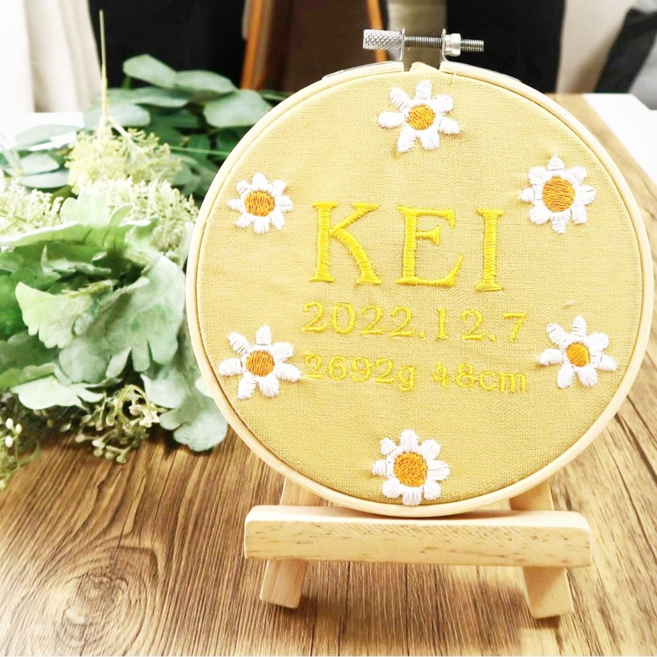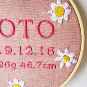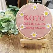 お花の手刺繍風デザインが施された命名書です。